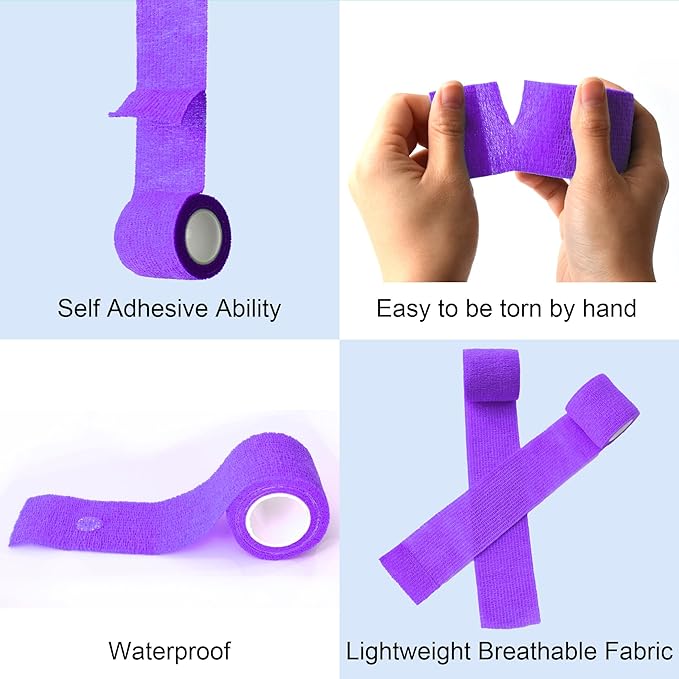 15 Pack Cohesive Wrap 2 Inch x 5 Yards Self Adherent Vet Tape for Pets, Elastic Self Adhesive Bandage Wrap for Sports, Finger, Wrist, Ankle (Purple)