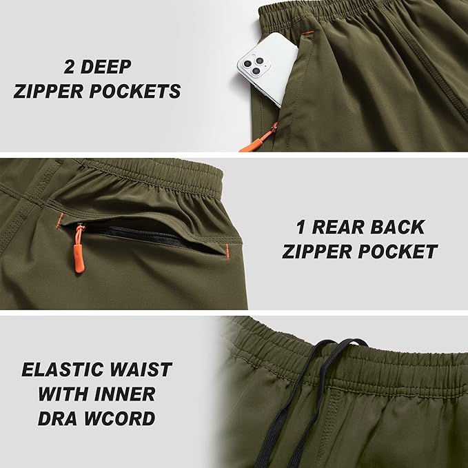 Men's Gym Shorts Sports Quick Dry Workout Running or Casual Training Short with Zipper Pockets