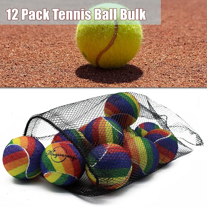 - 【 CONVENIENT BULK PACK WITH STORAGE】The package includes 12 tennis balls and comes with a reusable mesh bag for easy transport to the court, storage at home, or keeping your dog's playthings organized—no more scattered balls!