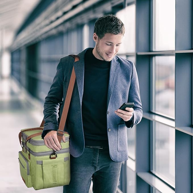 Maelstrom Lunch Bag Women,23L Insulated Lunch Box For Men Women,Expandable Double Deck Lunch Cooler Bag,Lightweight Leakproof Lunch Tote Bag With Side Tissue Pocket,Green