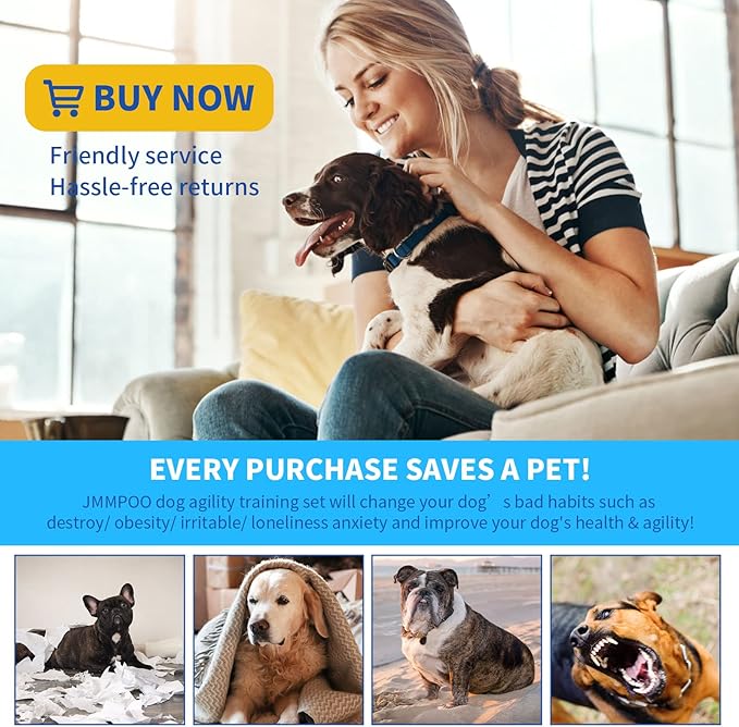 - FUN & CREATIVE COMBINATION: It is perfect for dogs that need to sharpen obedience, speed, and dexterity; JMMPOO dog agility training equipment has everything supplies you need to get going and is recommended for (small/ Medium/ large) dogs of any age!