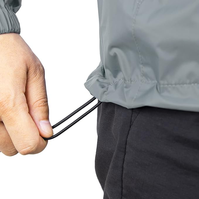 • ?�Unique Design?‘Lightweight lite rain jacket elastic cuffs prevent the rain drops to the cuffs; Adjustable drawcord hood to prevent yourself from being wet; The hem contains elastic rope for warmth and keep you dry. Suitable for casual wear, outdoor sports, outdoor work, traveling, cycling, hiking, climbing, fishing, camping, hunting.