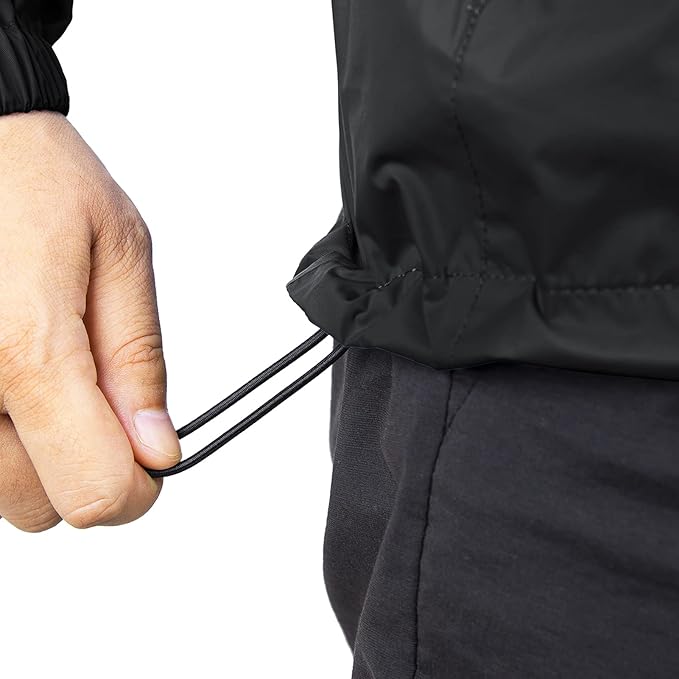 - ?�Unique Design?‘Lightweight lite rain jacket elastic cuffs prevent the rain drops to the cuffs; Adjustable drawcord hood to prevent yourself from being wet; The hem contains elastic rope for warmth and keep you dry. Suitable for casual wear, outdoor sports, outdoor work, traveling, cycling, hiking, climbing, fishing, camping, hunting.