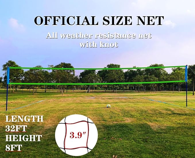 - Great Work for Grass Lawn Volleyball Net, beach, backyards, or other outdoor scenes. This complete volleyball net set for all you need to play with your family in a fun of day.