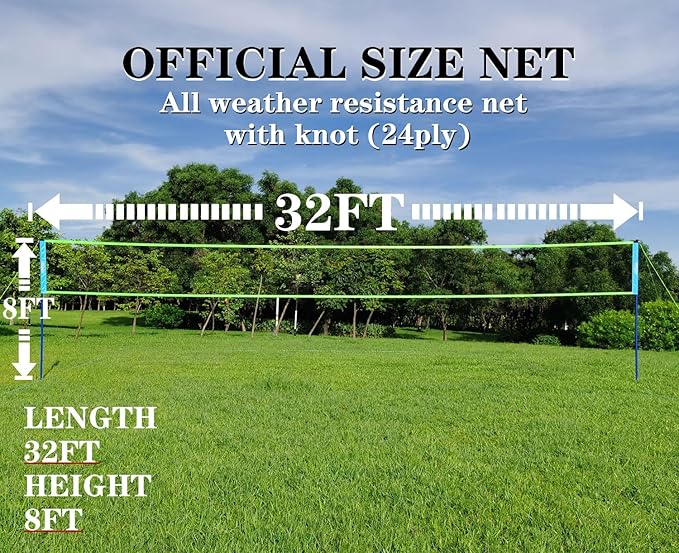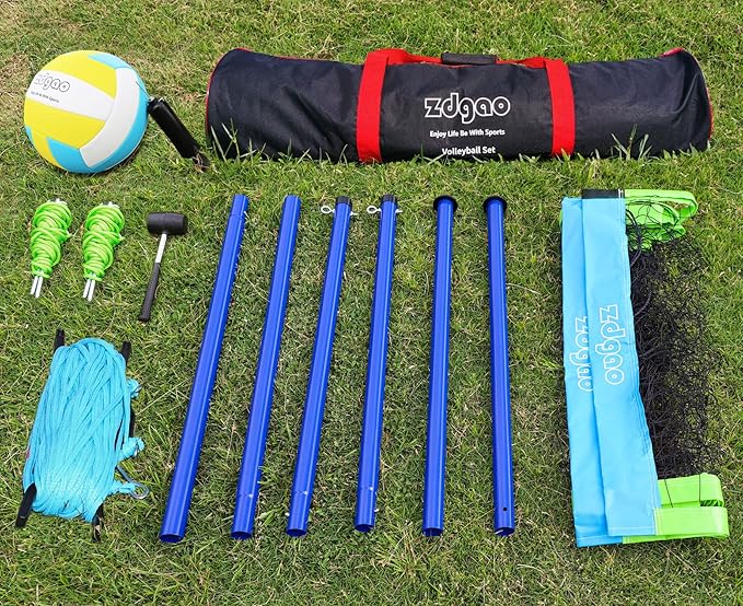 Outdoor Portable Volleyball Net System - Adjustable Height Poles with Soft Volleyball Ball, Pump, Hammer, Boundary Line, and Carry Bag for Backyard, Beach, Lawn