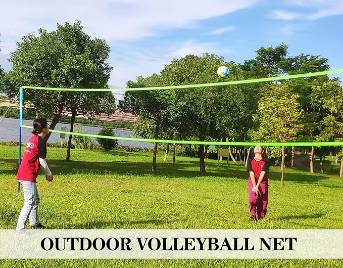 - ๐๐จ๐ฆ๐ฉ๐ฅ๐๐ญ๐ Volleyball Set for backyard/lawn/beach. This set includes volleyball net, steel poles, official size and weight volleyball balls, and inflation pump with needle, boundary line and a carry bag.