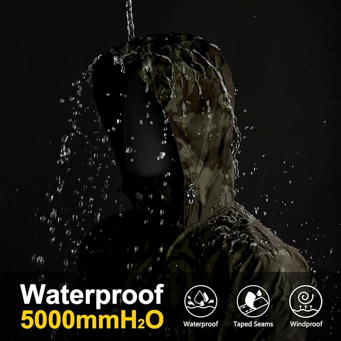 • ?�Material?‘Rain jacket for men waterproof is made of ripstop, high density polyester waterproof shell fabric; Interior is laminated TPU membrane. Seams are 100% fully sealed and welded with TPU membrane, keep you all-day dry in overcast and rainy.