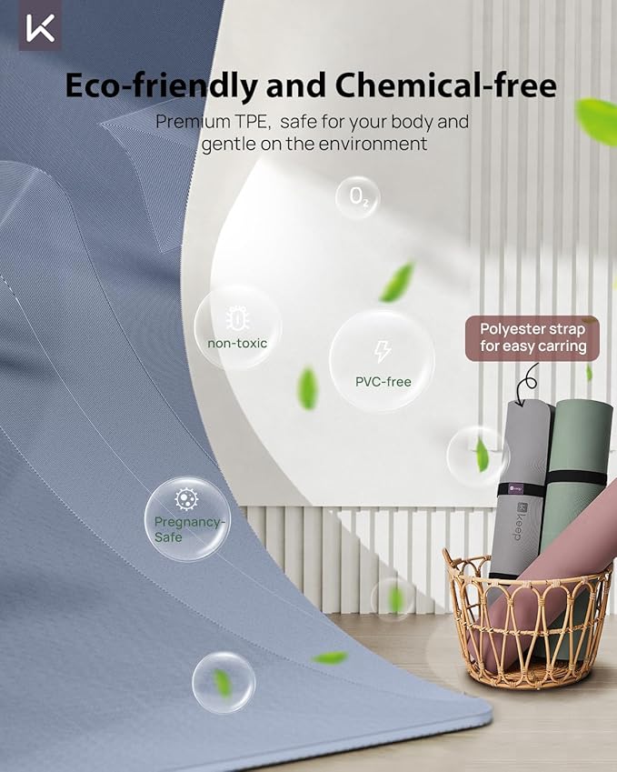 - Planet-friendly Comfort for Body and Mind -- Crafted from premium TPE, making it both eco-friendly and chemical-free. This yoga mat is free from plasticizers and formamide, ensuring it's safe for your body and gentle on the environment. Not only offers superior cushioning and grip but also ensures durability and long-lasting performance