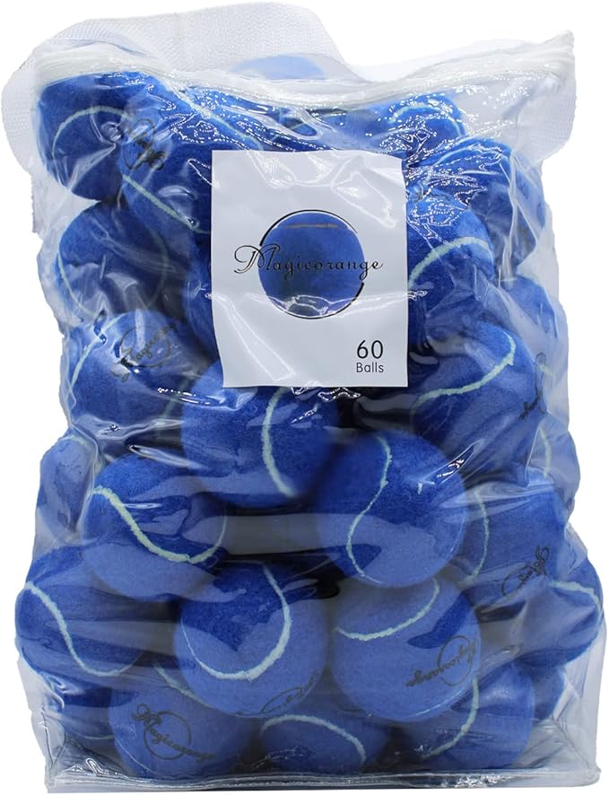 - 【 CONVENIENT BULK PACK WITH STORAGE】This 60-pack tennis balls ensures you'll never run out of balls mid-practice. Comes with a reusable mesh bag for easy transport to the court, storage at home, or keeping your dog's playthings organized—no more scattered balls!