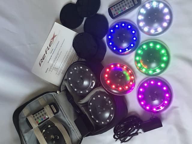 - System includes: 5 lights with mounting disks, charger, hand held controller, five tripod, and carrying case.