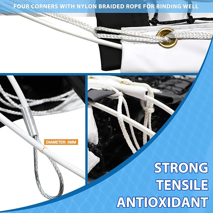 - 🍀【TOUGH】Four corners with nylon braided rope has tough material to protect against rain,sun and abrasion proof. Lock stitched threading around the top, sides and bottom ensures a strong, reliable connection.