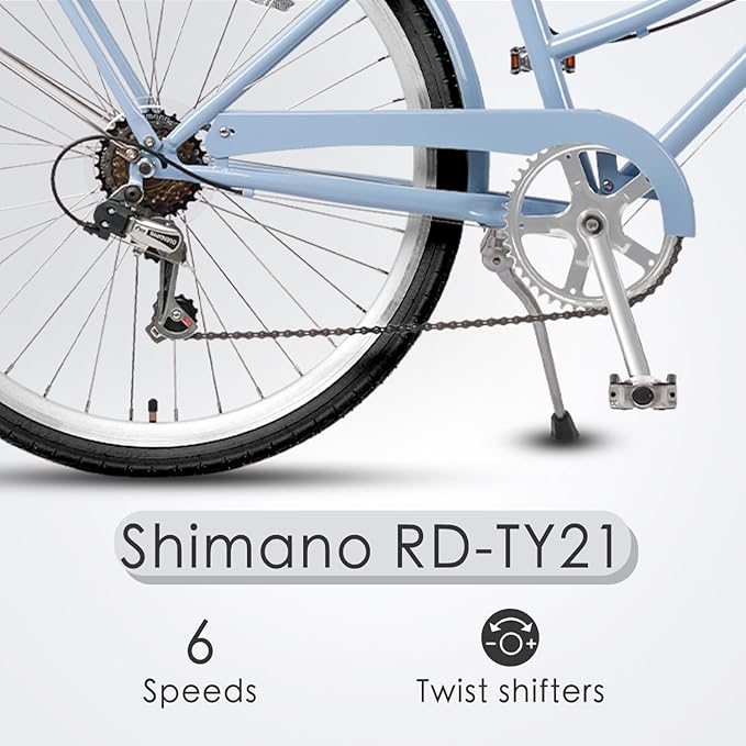 - 🚴♀️【Women-Centric Ergonomic Design】Crafted for female proportions: A low-step high-carbon steel frame enables easy mounting, while the swept-back handlebars promote upright posture (reducing back strain). The brown synthetic leather saddle with shock-absorbing springs combines vintage aesthetics with modern comfort.