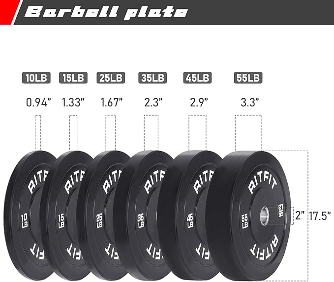 - A Sturdy Home Gym Station - The Home Gym System is made with a heavy-duty steel frame which guarantees a stable structure and long-lasting use. The RitFit PC-410CC Power Cage is 1000 lbs rated with size 44″W x 57.4″L X 85″H. The weight bench is adjustable with high weight capacity of 1300lbs. The 7 Feet Olympic Barbell Bars with 900lbs weight capacity and the Bumper plates are built to the highest standard and offer safe weight lifting.