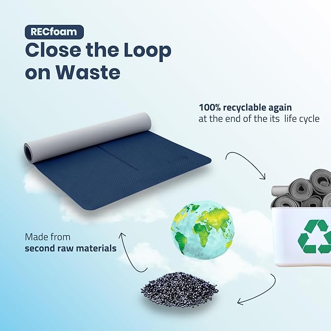- 【Eco-friendly & Recyclable】Crafted from 100% recyclable premium Recfoam, our large exercise mat is not only durable but also kind to the environment, ensuring no harm to our planet during its lifecycle