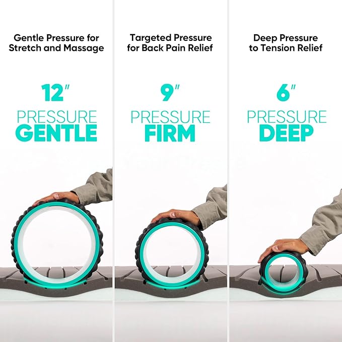 - GROOVE DESIGN TO PROTECT YOUR SPINE — The spine groove avoids pressing your spine or increasing spinal pressure. The bumpy design massages the deep muscles of the back and relieves muscle tension and back pain. Our back stretcher roller wheels are also light to travel with for on-the-go back exercise just about anywhere. In doing so, the muscles are stretched and ultimately targeted, which helps in releasing pressure to your back.