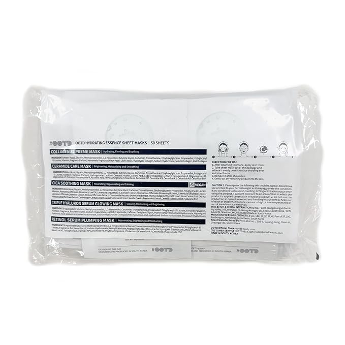 - Product Benefits : Korean face sheet mask bundle with hydrating, brightening, moisturizing, firming and soothing effect. Vegan certified with collagen, hyaluronic acid, ceramide, cica, peptide, retinol and vitamin C . Korean face sheet mask bundle with hydrating, brightening, moisturizing, firming and soothing effect. Vegan certified with collagen, hyaluronic acid, ceramide, cica, peptide, retinol and vitamin C .
