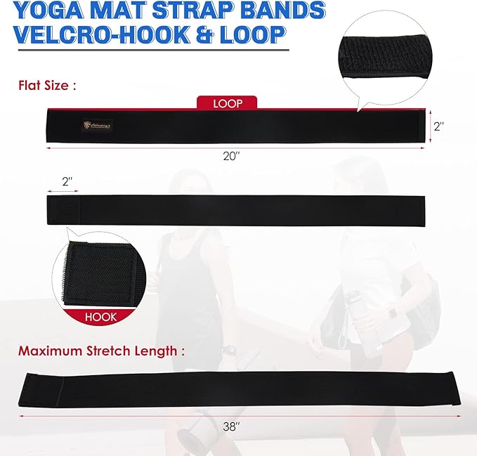 - Fits Most Size Yoga Mats : 2 pack yoga mat strap, 20"L x 2"W ( Super elastic strap that can stretch up to 35 inches) ,fits most size Yoga/Workout/Exercise/Fitness/Pilates Mat , easy to carry and storage