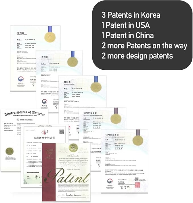 - Protected by USA Patent - 3 Patents in Korea, 1 Patent in the USA, 1 Patent in China, with 2 more patents on the way. We also have 2 additional design patents.