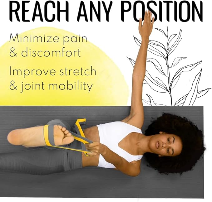 - SELF-CARE. Classic yoga strap helps to increase resistance and decrease tension while stretching, thus to achieve deeper stretch without harming one’s ligaments and muscle tissue. It aids to improve posture, balance, flexibility and joint mobility. The band is easy to adjust and secure in place, so that you can reach any position or asana steadily, consciously and with self-love. Widely used for yoga, pilates, physical therapy, post-injury rehabilitation, exercising and more.