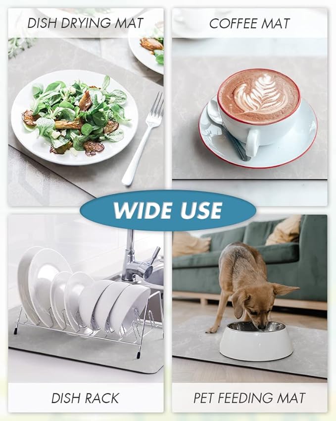 - SUPER ABSORBENT: Super absorbent soft diatomite can suck up water splashes and duping coffee instantly without messing up your countertop