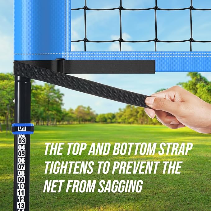 - Easy Setup with Button Locking System: The system ensures that assembling this portable volleyball net outdoor is quick and easy. You can set it up in just 5 minutes, making it an ideal choice for a volleyball training net in your backyard