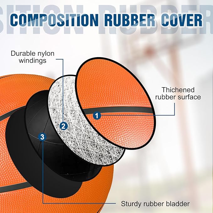 - Fine Touch and Control: the indoor basketballs are made from reliable rubber, wear resistant and soft; Each ball is equipped with a yarn-wound bladder as standard, not easy to leak; The ball surface has small grains and deep channels, which provide better grip and good bounce passes; Quality material brings you the fine touch