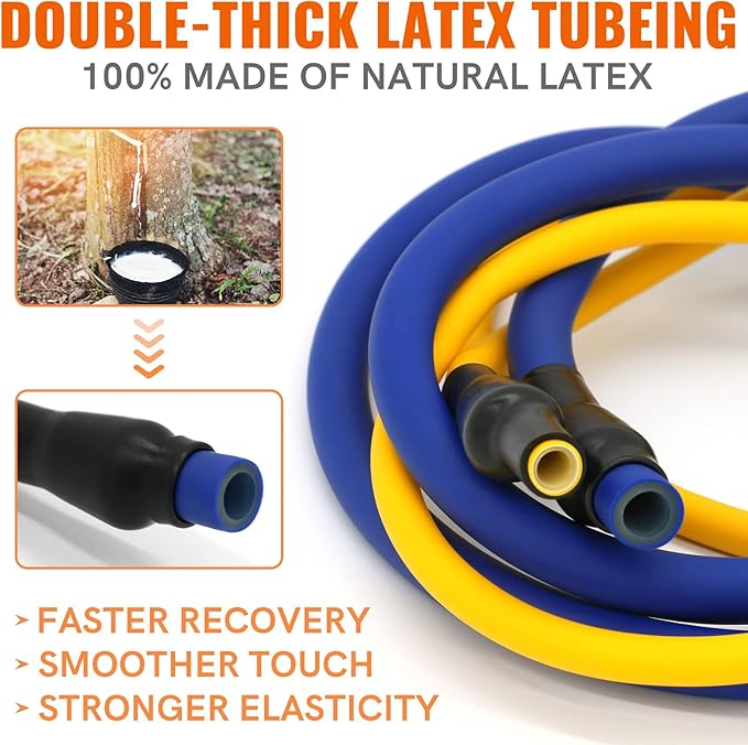 - THE LATEST UPGRADED 105LBS RESISTANCE BANDS: Our resistance bands for working out are made of 100% healthy and environmentally friendly natural latex material, which have smoother touch, stronger resistance and better wear resistance! The exercise bands resistance have 5 different strength levels, corresponding to 5 different colors (yellow 5 lbs, green 15 lbs, red 20 lbs, blue 30 lbs, black 35 lbs), which can be used alone or stacked in any combination to a maximum equivalent of 150 lbs