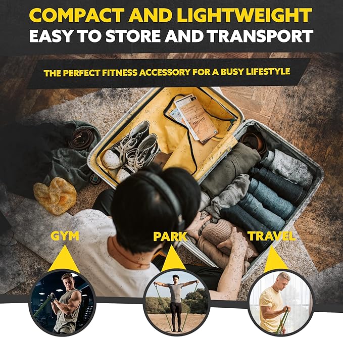 - [Versatile] - This work out bands set for men and women works as travel fitness equipment or exercise equipment for home gym so that you can always get a strong resistant band workout or as pull up assist bands when you need a bit of assistance
