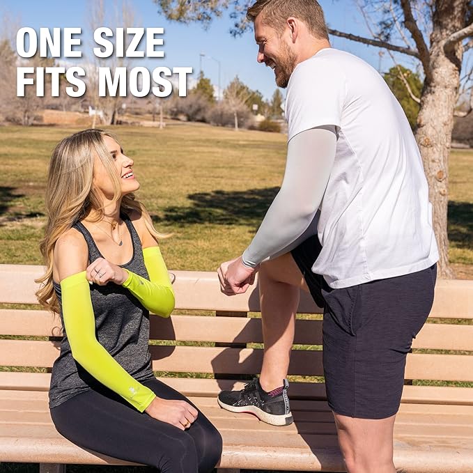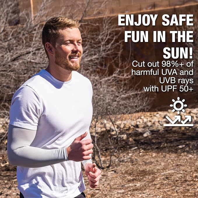 • Superior UPF 50+ premium arm sleeves – our innovative UV sleeves for men and women block over 98% of the sun’s harmful UVA and UVB rays, offering full UPF 50+ coverage. These sun sleeves for men and women are ideal for shielding yourself from the sun on hot days – whether you’re playing golf, basketball, baseball, volleyball, running, or cycling.
