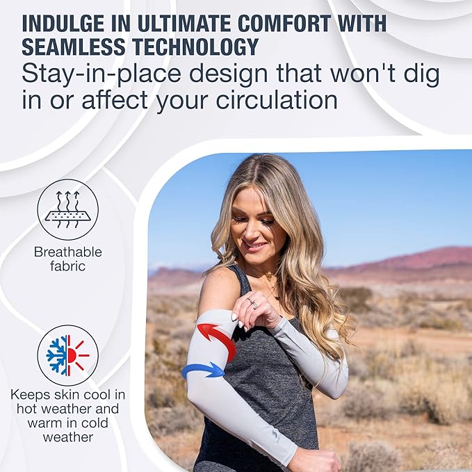 • Don’t settle for sleeves for arms that use cheap materials that grow hot & itchy during wear. Our arm cooling sleeves for men & women are constructed of lightweight moisture-wicking fabric that’s highly breathable, dries quickly, and keeps skin cool. Durable and weather-resistant, these zero-chemical, breathable sleeves are made to last through every adventure.