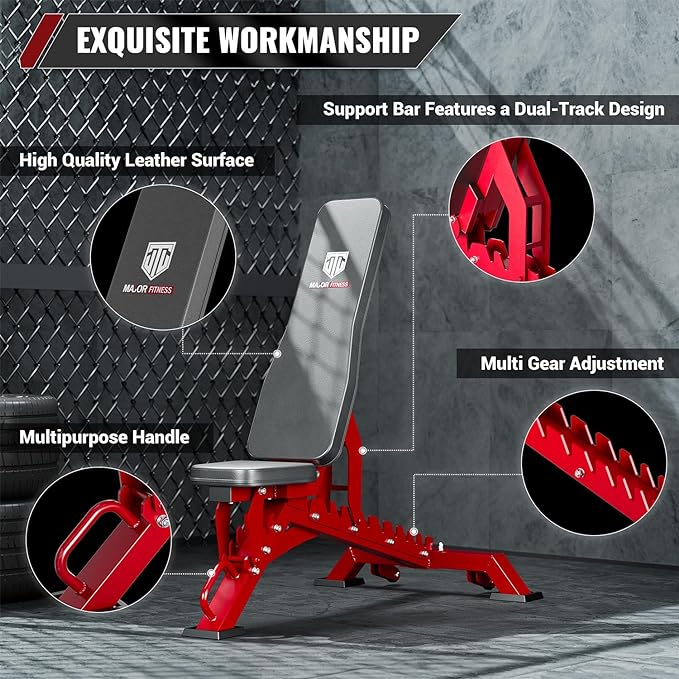 Major Fitness Weight Bench, Capacity Bench Press and 32 Adjustable Positions Strength Training Bench for Garage and Home Gym Workouts, Weight Lifting, and Bench Press