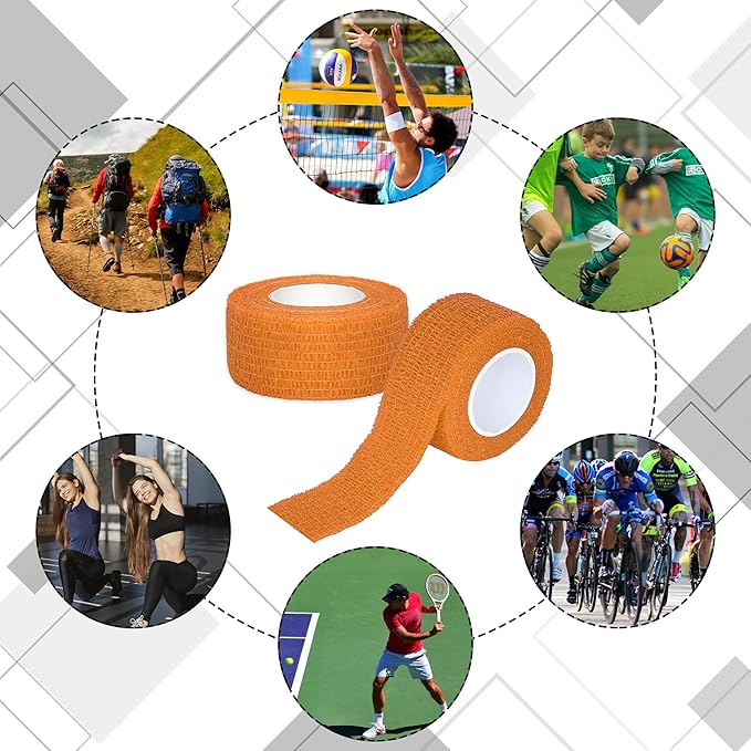 8 Rolls 1” Cohesive Bandage Self Adherent Bandage Wrap Breathable Vet Tape Elastic Adhesive Bandage for Sports, Wrist, Ankle, Tattoo Wraps(Orange)