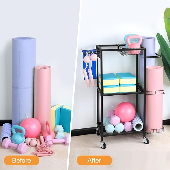 - 【Easy Assembly & Customer Service】: All parts come together in 1 box. Read the instruction manual or watch the assembly video to get more info before assembly. If there are any lost accessories, installation questions, or quality problems with the workout equipment storage cart, please feel free to contact us and we will reply within 24 hours.