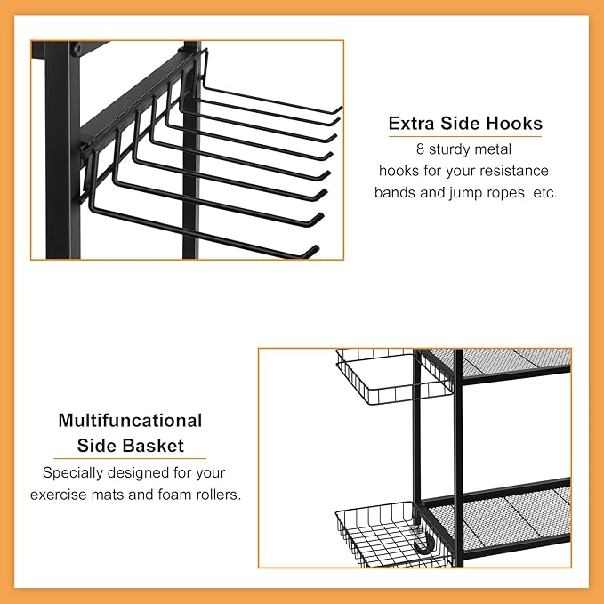 - 【Sturdy and Durable】: OYEAL home gym storage rack with wheels is made of high-quality metal material, through careful processing and design, the whole construction is sturdy, durable, and wear-resistant. The premium material would greatly improve the service time and provide reliable bearing capacity.