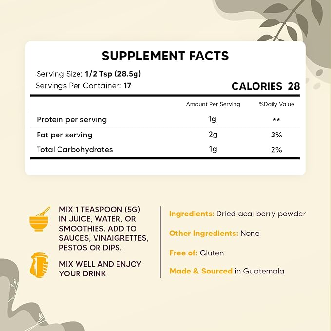 Acai Berry Powder, Freeze Dried Acai Powder - Organic Acai Powder for Smoothie Bowls, High in Nutrient-Dense Antioxidants, Made from Brazilian Acai Trees - Vegan, Gluten Free