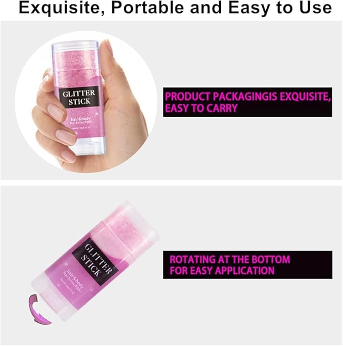 - 【Glitter Gel for Body, Face & Hair】The silver body glitter stick with fine glitters and iridescent sequins, the color and shine vary in different angles, is great for glitter makeup, hair accessories, pride accessories. It delivers super vibrant and sparkling effect, looks amazing once it hits the light.