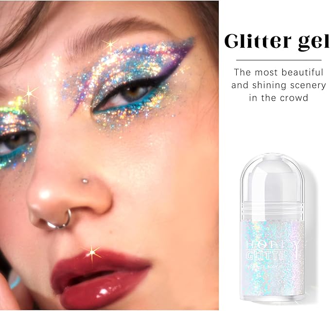 - Wide Applications: This cosmetic chunky glitter gel is perfect for your body, face, eyeshadow, lips, cheeks, hair, nail art, and more, and perfect for rave hair accessories. It has a strong glowing effect in day and night, especially suitable for parties, weddings, stages and music festival, making you the glamorous focus of a passionate revelry
