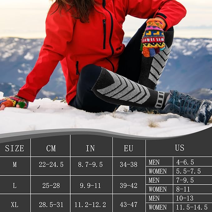 Merino Wool Ski Socks - 2 Pairs Knee High Skiing Socks, Winter Warm Snowboard Thermal Socks