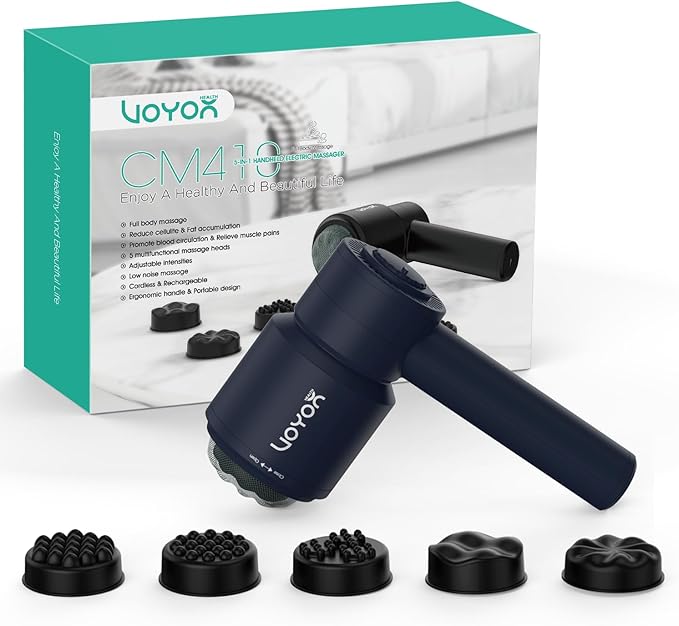 VOYOR-HEALTH Handheld Cellulite Massager, Electric Cellulite Remover Body Sculpting Massage with 5 Replaceable Heads for Arm,Thigh,Calves, Cordless & Rechargeable Deep Tissue Massager CM410 (Blue)