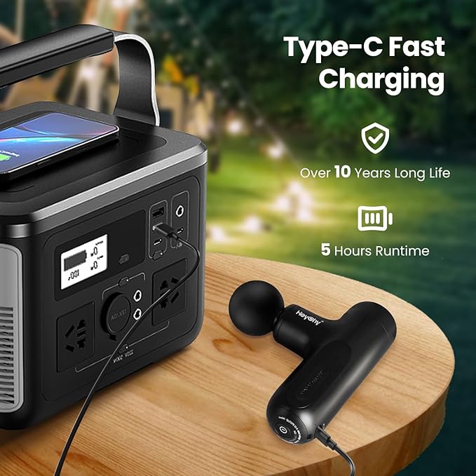 - Long-Lasting Battery: This massager can be used for up to 5 hours continuously. Despite its compact size, its remarkable battery life ensures you never have to worry about running out of power. The battery supports up to 10 years of lifespan, ensuring reliability and durability. For added convenience, it includes a Type-C charging port compatible with 110V to 220V voltages. Keep it powered and ready to use whenever needed.