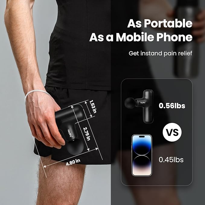 - Compact and Portable: This small massager weighs only 0.56 pounds and measures approximately 4.8 × 2.8 × 1.5 inches, making it easy to fit in your pocket, gym bag, or luggage. Its lightweight, ergonomic design, along with its high portability without compromising power, makes it ideal for athletes, travelers, and busy professionals. You can relax anywhere and at any time with HEYCHY.