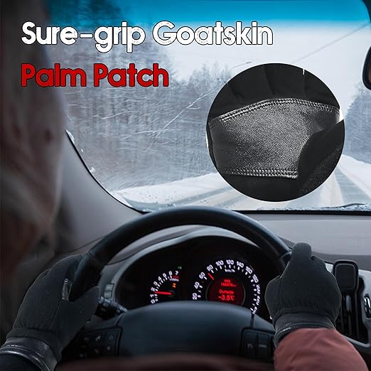 HANDLANDY Winter Gloves for Men Women, Thermal Gloves for Cold Weather Driving Cycling Ski Outdoor, Insulated Leather Work Gloves (Small, Black)