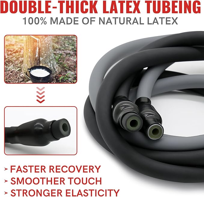 - THE LATEST UPGRADED 150LBS RESISTANCE BANDS: Our resistance bands for working out are made of 100% healthy and environmentally friendly natural latex material, which have smoother touch, stronger resistance and better wear resistance! The exercise bands resistance have 5 different strength levels, corresponding to 5 different colors (cyan 10 lbs, blue 20 lbs, red 30 lbs, orange 40 lbs, purple 50 lbs), which can be used alone or stacked in any combination to a maximum equivalent of 150 lbs