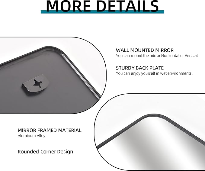 - [High-quality Materials]:DESBING black metal mirror uses 4MM tempered glass, which makes it shatterproof, explosion-proof and safer to use. In addition, coupled with the aluminum alloy frame design, it makes this mirror shatterproof, explosion-proof and rust-proof, perfect for bathroom use.