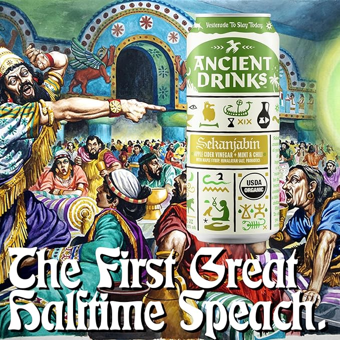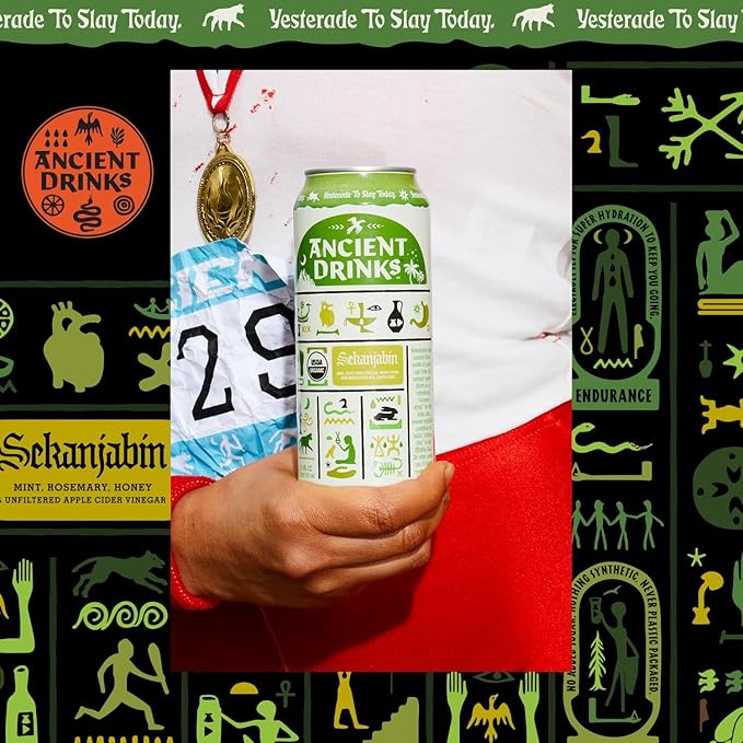 ANCIENT DRINKS Apple Cider Vinegar Beverage with Electrolytes, Vitamins, & Probiotics, Organic, Super-Hydrating Sports Drink - Sekanjabin (Mint & Chili) - 16 fl oz (12 cans)