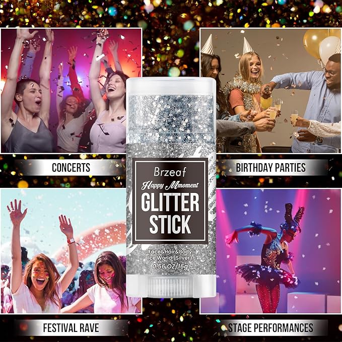 - 【Bright and Lasting Hold】Our silvery body glitter stick is makeup product designed specifically for use as accessories for events such as music festivals, concerts, parties or holiday raves. Our silvery face glitter stick will sparkle and shine, the color and shine of the sequins change with visual changes, releasing a dazzling light, allowing you to party and create your own sparkling look.