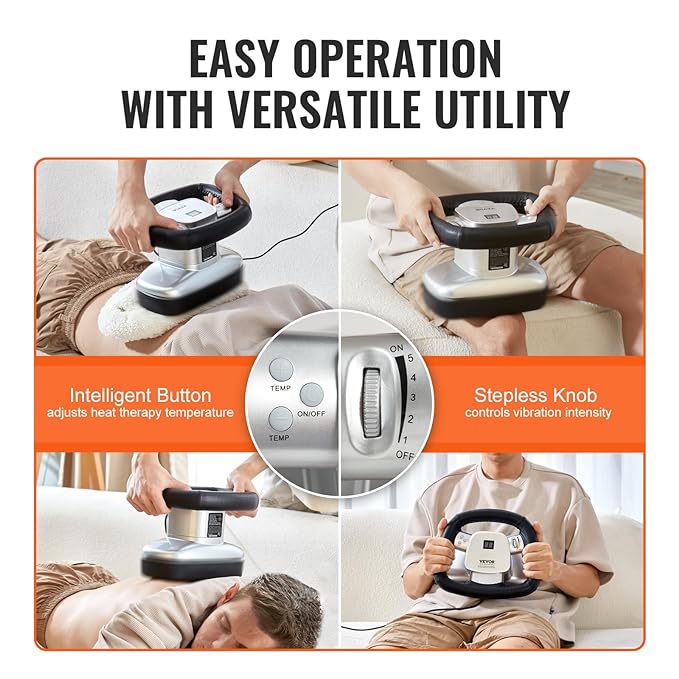 - Deep Relaxation: Immerse yourself in rejuvenation with VEVOR chiropractic massager. Heat therapy ranging from 68-149℉ and random orbit vibration at 400-4600rpm promote blood circulation, ease muscle tension, and vanquish fatigue, delivering a therapeutic and deeply relaxing experience.