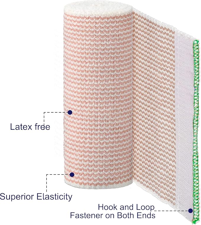 - COMFORTABLE & LATEX FREE - compression bandage is made of comfortable and lightweight high-quality cotton fabric, which fits the skin very well. It allows your skin to breathe and prevents rashes or irritation. This durable and soft fabric does not contain latex ideal for those with latex allergies. Elastic wrap bandages are also lightweight and wear comfortable, suggest not for re-use.