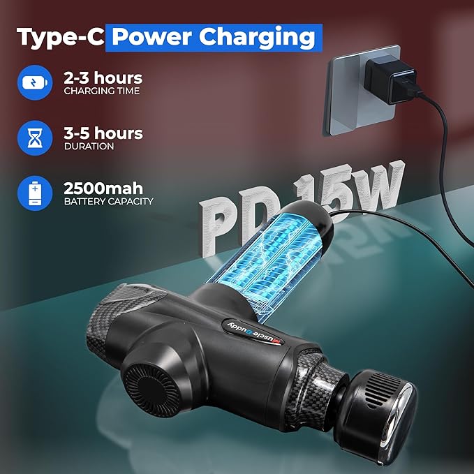 - Ultra-Silent Deep Tissue Muscle Massage Gun - Perfect massage gun for athletes' hand back Leg workouts. Built-in a super quiet brushless motor, as low as 40db, brushless motor. MuscleBuddy percussion massager gun is ultra-compact and easy to grip, making it ideal for home, office or gym use anytime.
