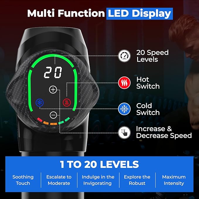 - Multiple Speeds and Attachments: Tailor your massage experience with 20 speed levels and 10 interchangeable heads. Whether you need an intense sports massage or a gentle relaxation massage, MuscleBuddy has got you covered. Delivers depth high penetration reaches and massages muscle tissue 10mm depth, relieving muscle fatigue and pain. Just increased or decrease the intensity of your massage at your desirable choice.